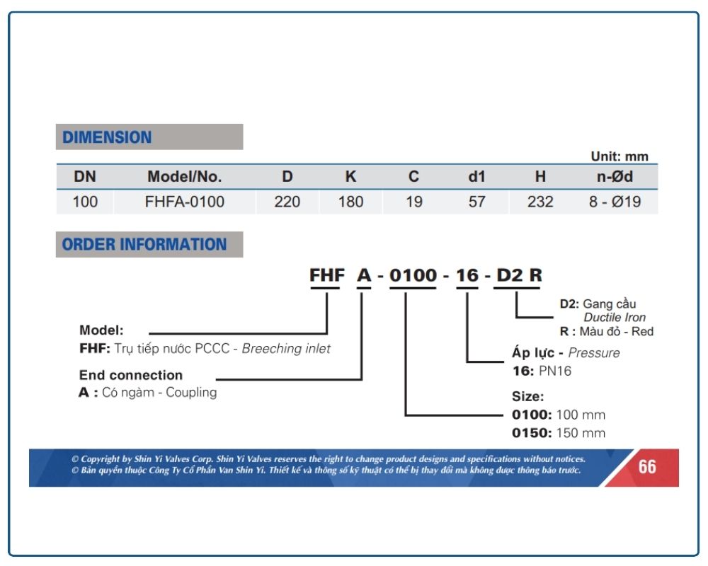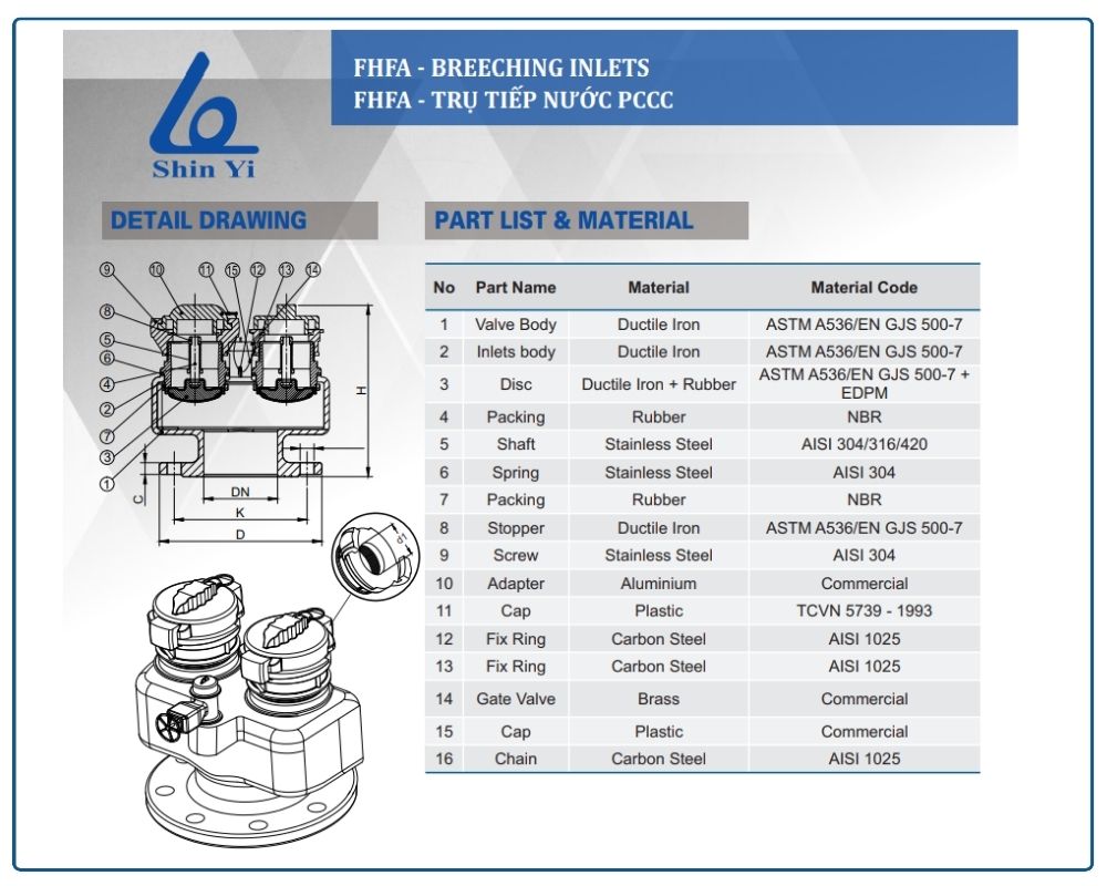 Thông số kỹ thuật trụ tiếp nước Shinyi