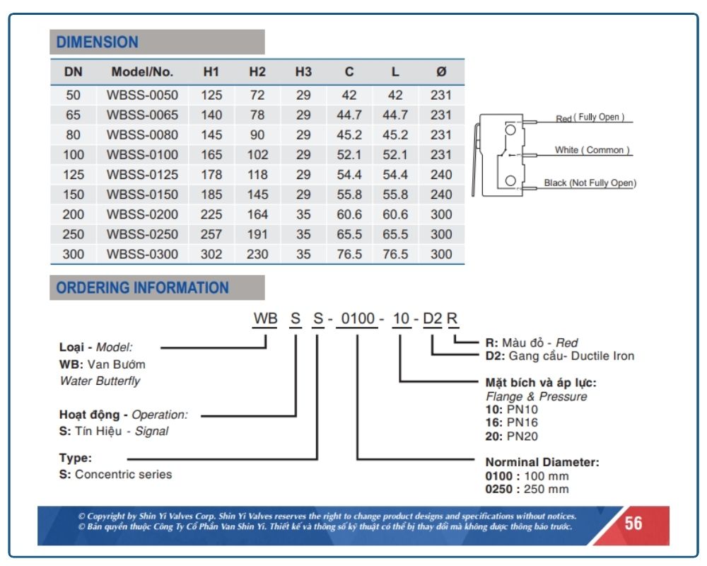 Van bướm tín hiệu điện Shinyi DN250