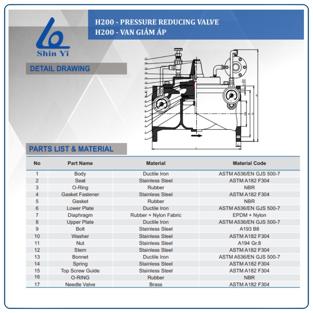Thông số kỹ thuật van giảm áp Shinyi
