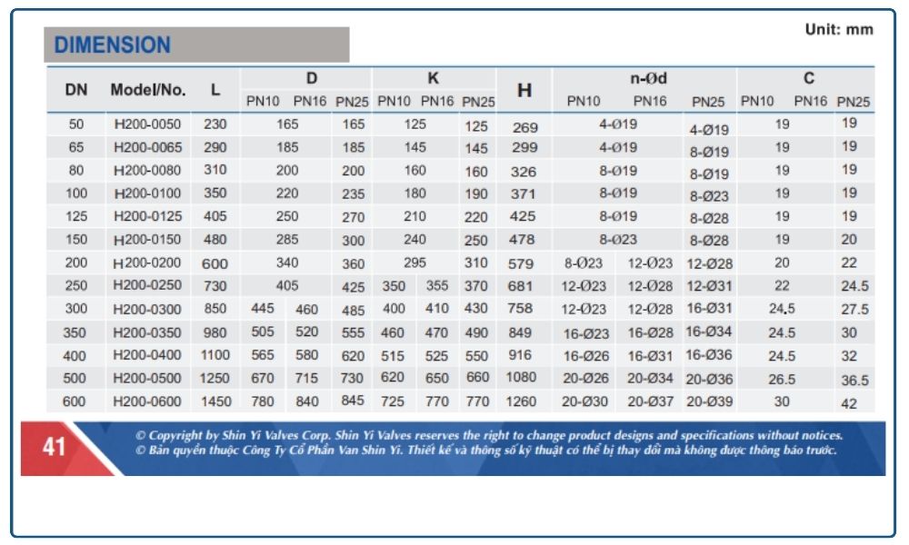 - Áp suất làm việc: PN10, PN16, PN25