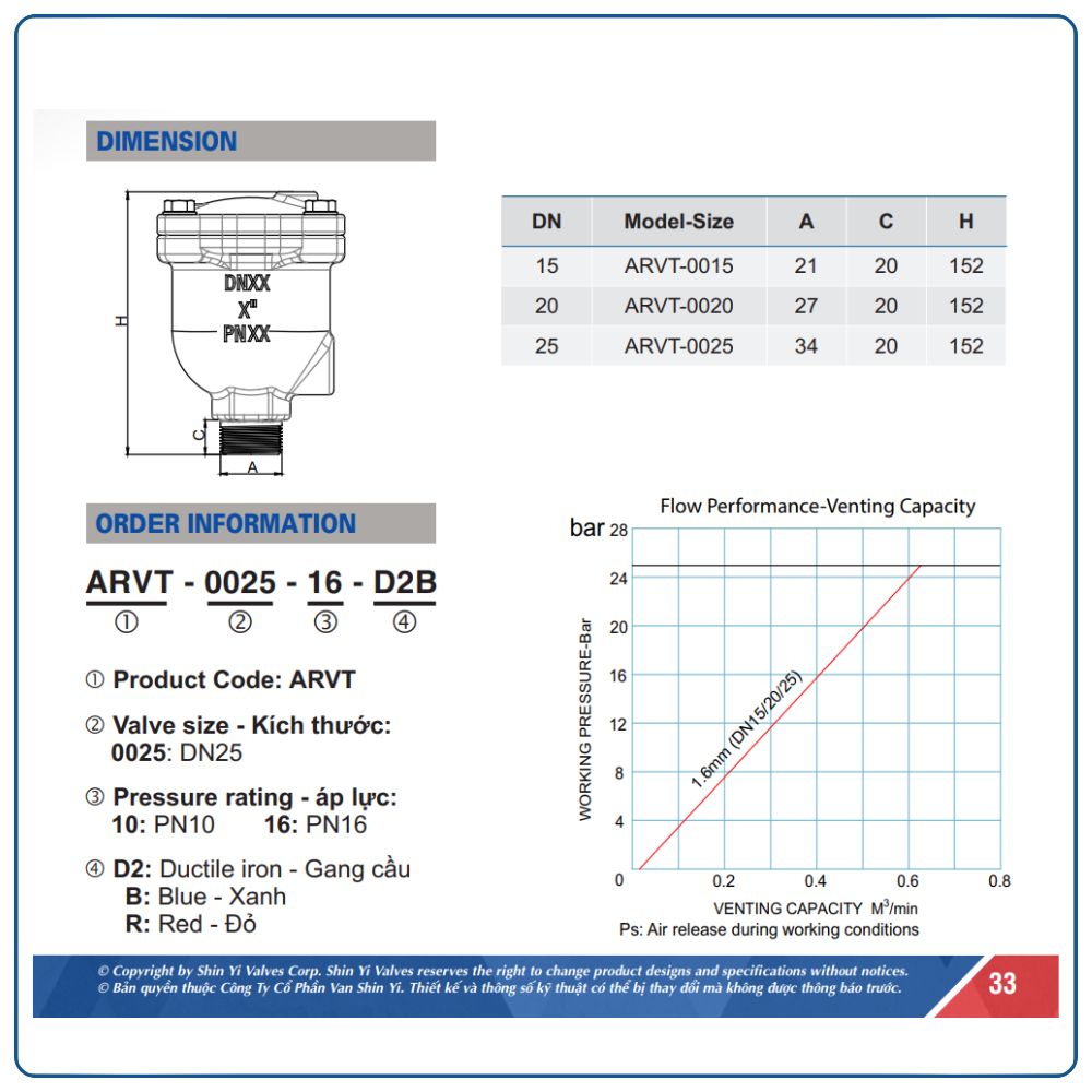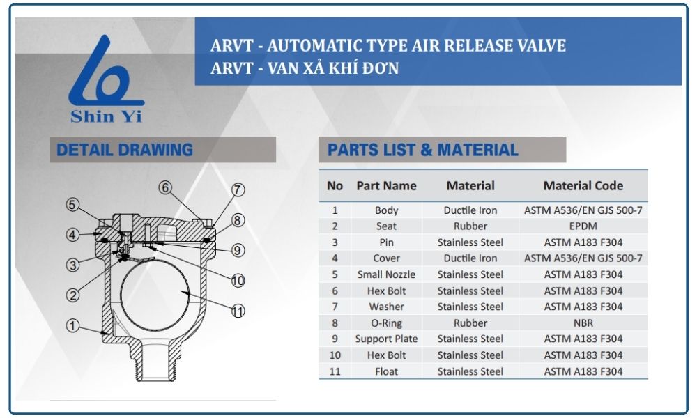 Thông Số Kỹ Thuật Van Xả Khí Đơn Shinyi DN15