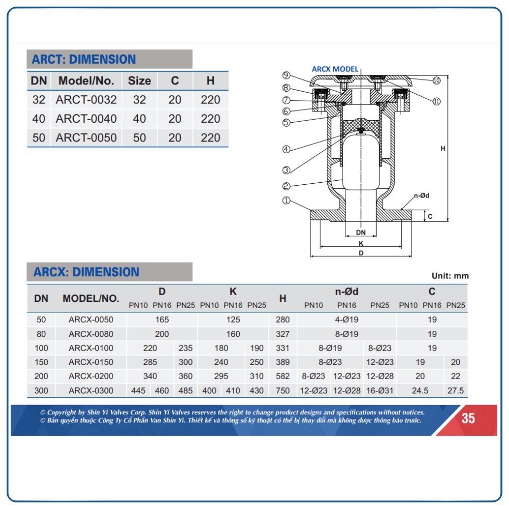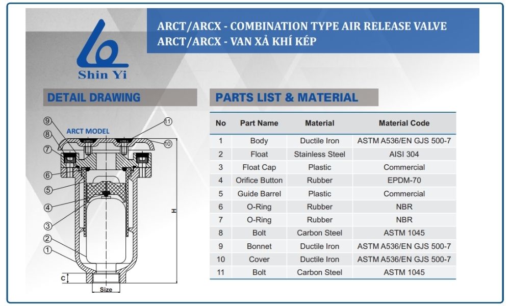 Thông số kỹ thuật van xả khí kép Shinyi DN25